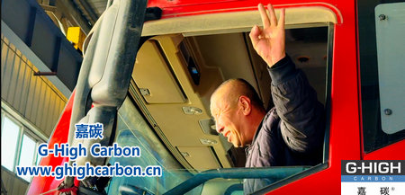 嘉碳厂区内,司机坐进驾驶室,笑意明朗,抬手挥别。满载增碳剂的卡车缓缓驶出,向着目的地平稳进发。
